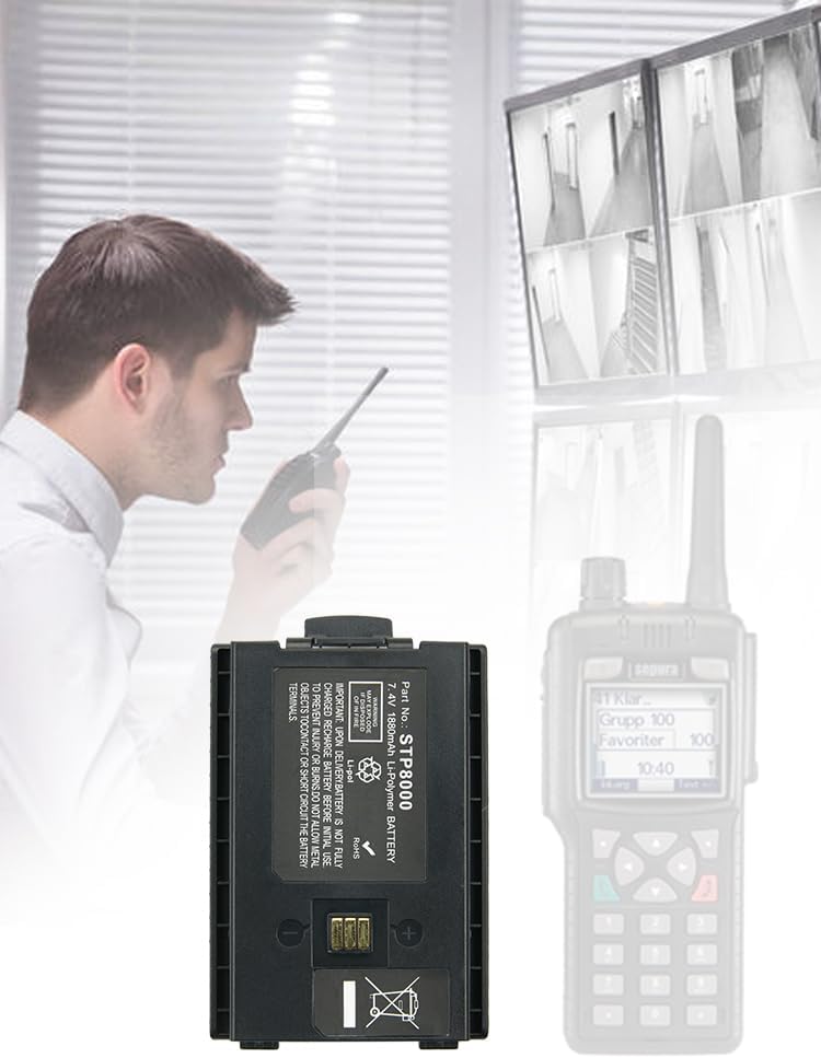 Specification:Capacity: 1880mAhBattery Type: Li-Polymer BatteryVoltage: 7.4VWeight: 92g/0.2lb/3.2oz/pcsCompatible with Sepura Two Way Radios:For Sepura STP8000 STP8020 STP8030 STP8035 STP8038 STP8040 STP9000 RadiosFits Battery Charger Station:Charge with Sepura STP8000 Battery Charger BasePackage Included:1 x BatteryNote: 1. Before you order it,please double-check if the item can work for your radio,please check the compatible list2. All our batteris was not full charged,please charged it before used