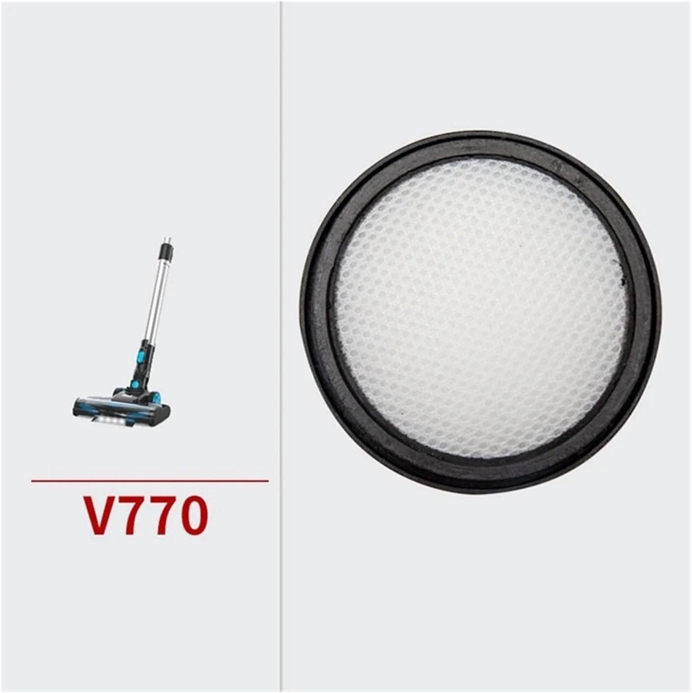 Vacuum cleaner filterModel: V770Color: As shown in the picturePackage Contents:6 x Vacuum filter replacementOnly the above packaging contents are included, excluding other products.Note: Light reflections and different displays may cause the color of the item in the picture to be slightly different from the actual object. The allowable error of measurement is /-1-3cm.Welcome to our store. We will do our best to provide you with the highest quality service.