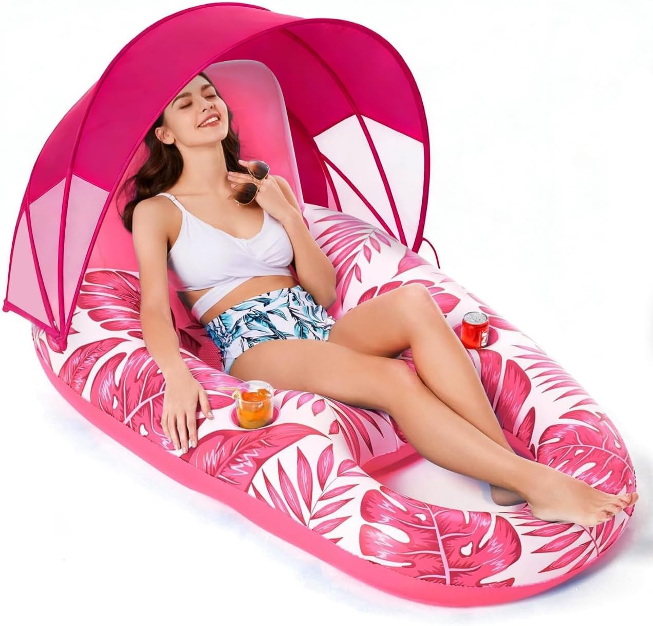 • Inflatable Pool Float with Taller & Removable Sun Canopy - The canopy is taller, offers a better view and ultimate comfort. Well-ventilated and UPF50, has great airflow to stay cool and comfortable. Thicker support poles for enhanced stability.