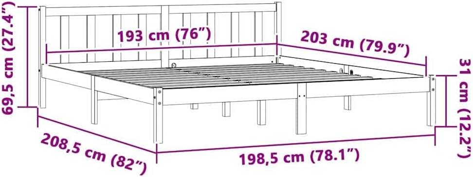 Solid Pine Construction This Modern Bed Frame is crafted from solid pine wood, offering a strong base for sweet dreams. Its natural wood grain and warm tones add a bit of elegance and go well with different bedroom styles. Pine is known for being sturdy and eco-friendly, ensuring dependable support for years to come.Engineered Wood Legs Its engineered wood legs balance durability with a modern touch. They provide solid support and stability, keeping the bed sturdy all night long. This material doesnt warp and stands strong over time, making it a lasting choice for your sleep needs.Fixed Slatted Frame The fixed slatted frame effectively supports your mattress, allowing enough airflow for cooler, comfy sleep. These sturdy slats evenly spread out weight, boosting the bed' structural support and extending the life of your mattress.Simple Assembly Assembly is a breeze, needing just a screwdriver and two people. It' all about attaching the frame and securing the slats, making it easy to set up without hiring anyone. This means you can kick back and enjoy your new bed with hardly any wait time.Maintenance Simplicity Keeping this bed frame looking good is super easy”just a quick wipe with a dry cloth does the trick. Cleaning is hassle-free, so it looks good with little effort. This practical side of care gives you more time to enjoy the cozy vibe it brings to your bedroom.Color: NaturalMaterial: Solid pine woodFrame material: Engineered woodOverall dimensions: 82.09 x 78.15 x 27.36 in (L x W x H)Compatible mattress size: 193 cm x 203 cm or 76 in x 80 inDurableEasy to CleanWith slatted frameAssembly required: YesDelivery-contains:1 x Bed Frame