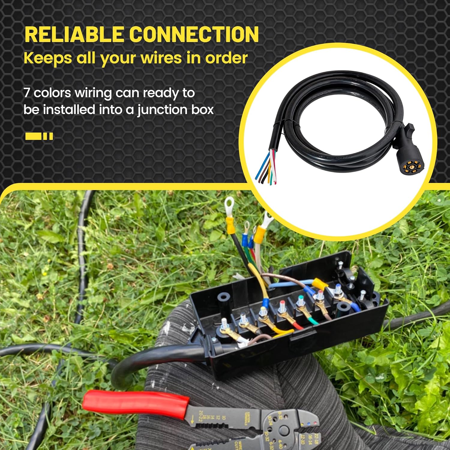 Wide Application: 7-way trailer wire adapter provides a fast and simple connection, keeps all your wires in order, perfect for RVs, trailers, campers, caravans, food vans and other towed vehicles