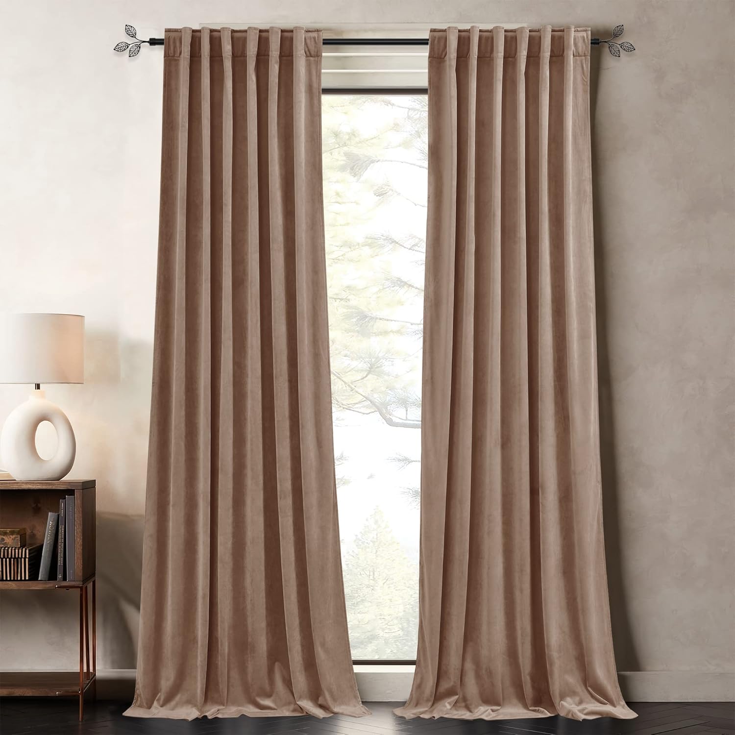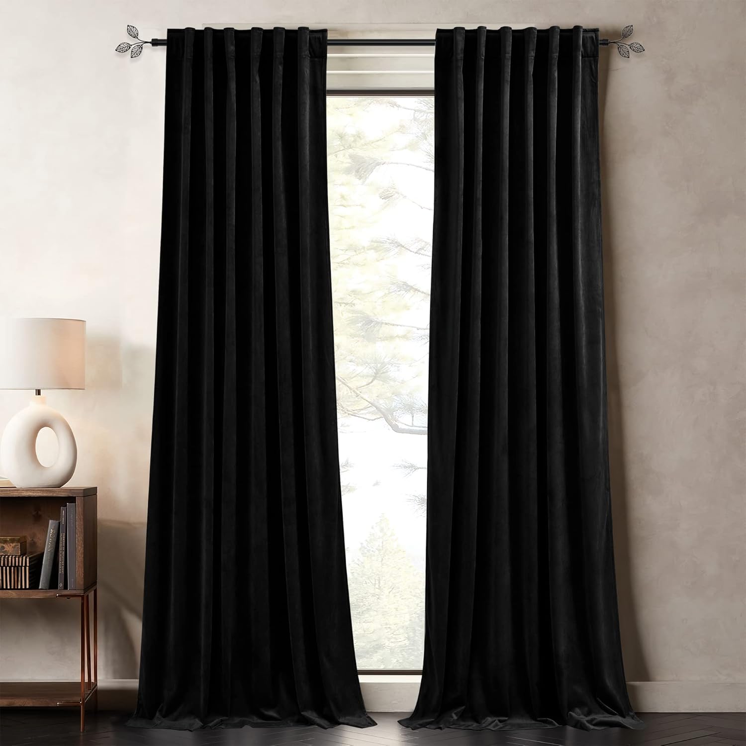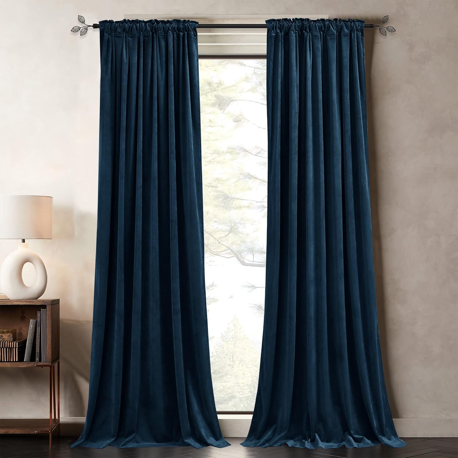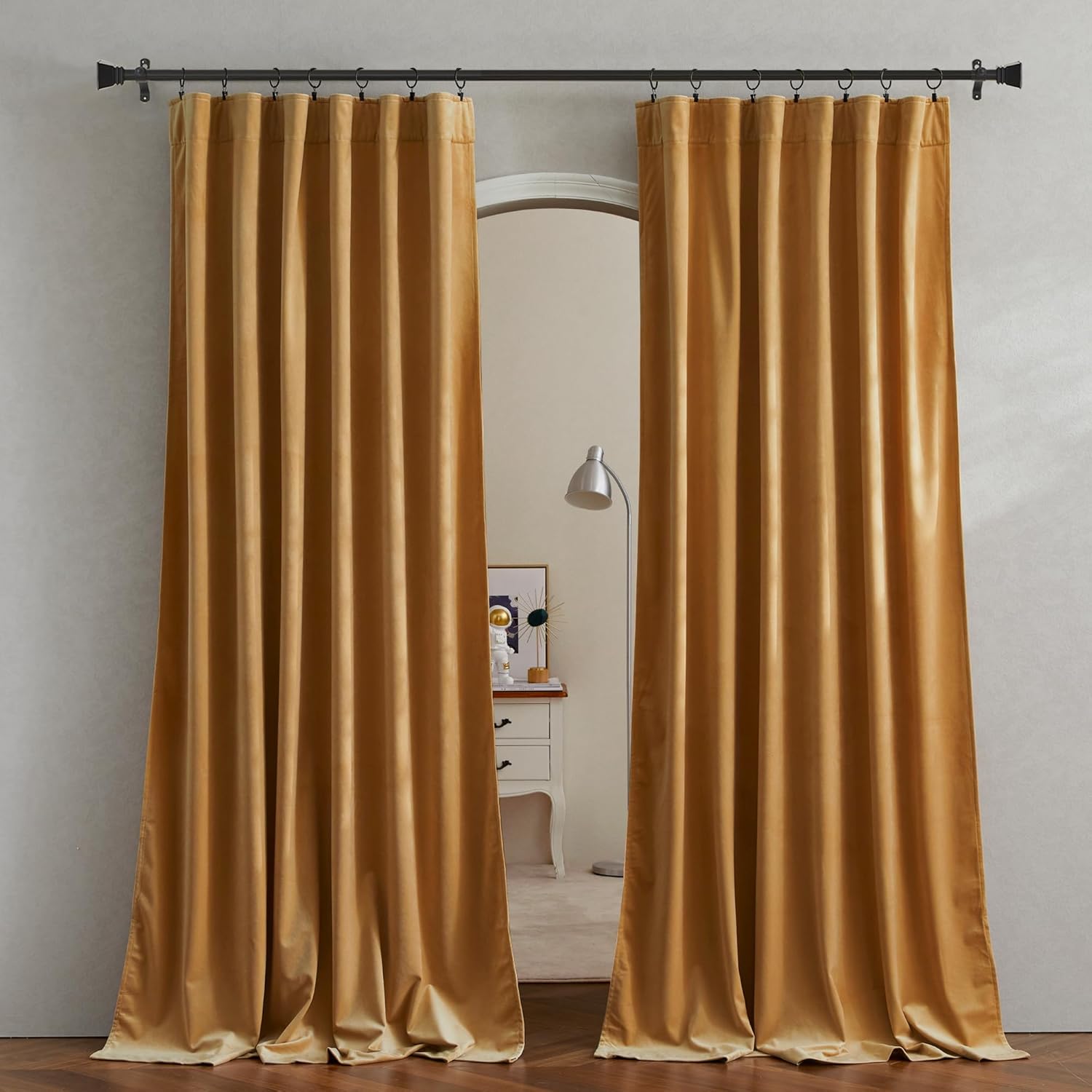 • READY MADE - Package includes 2 velvet curtain panels, each mesures 52" width by 96" length. Soft and smooth handle without any chemical reagent, can be hung as window/door curtains for bedroom & living room & dining room...
