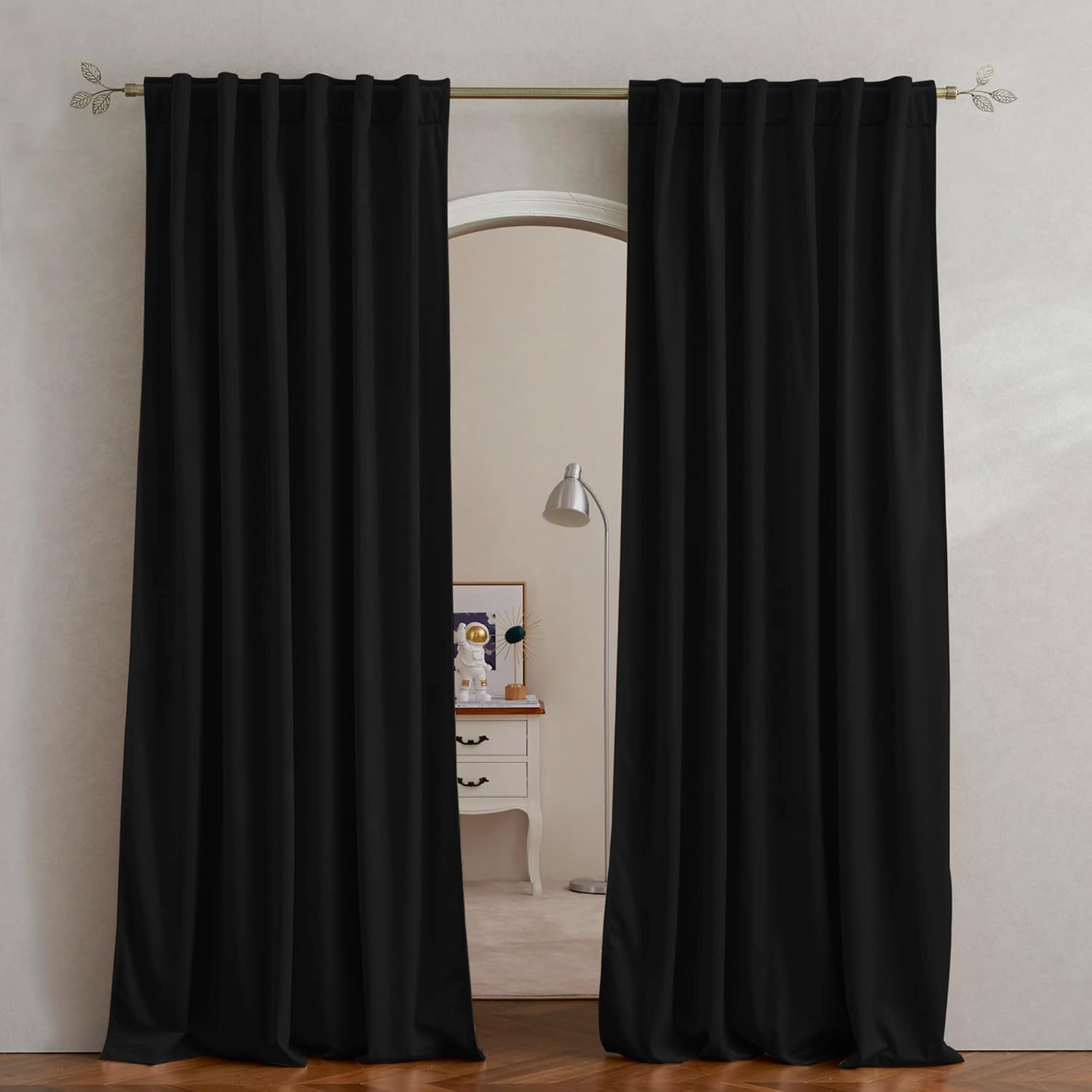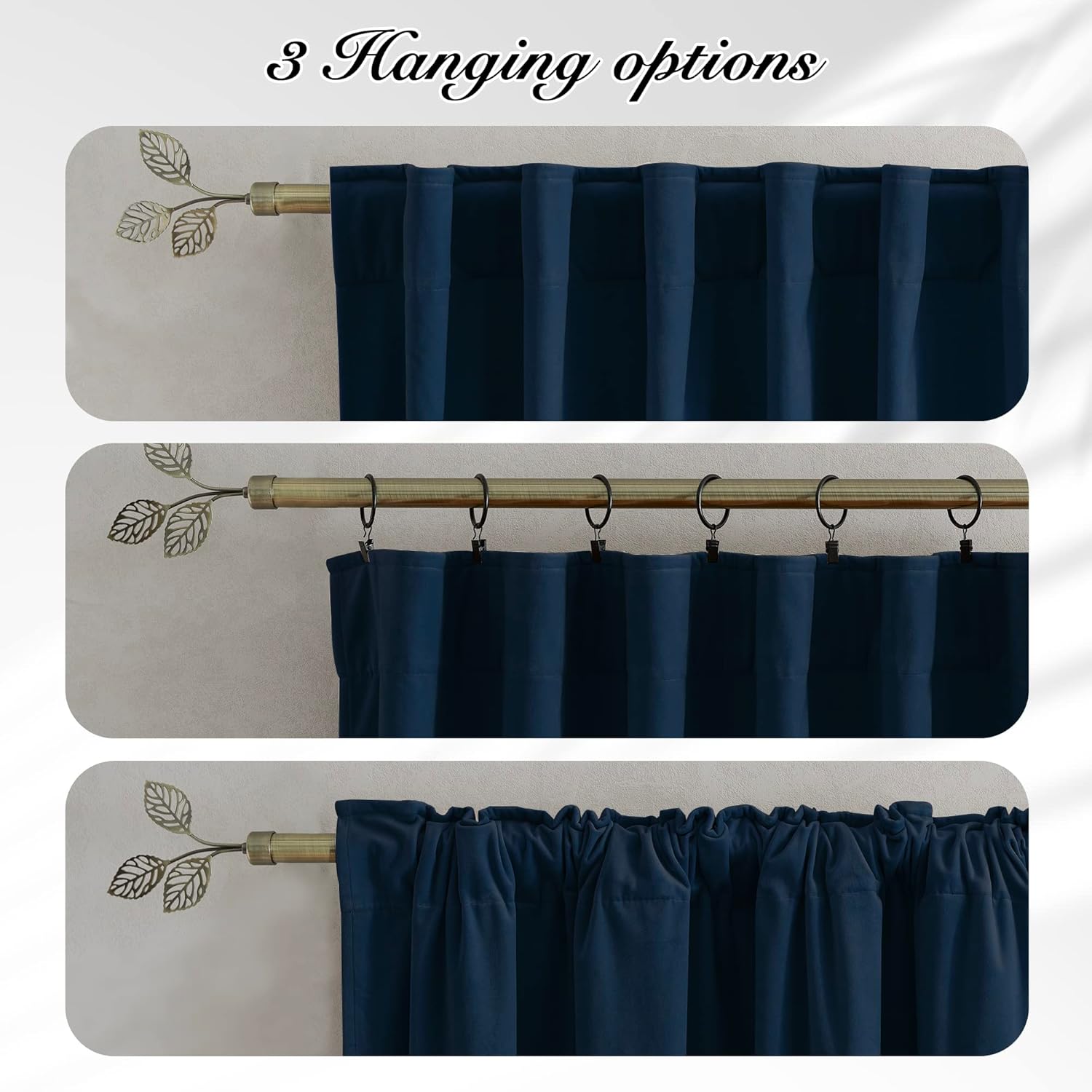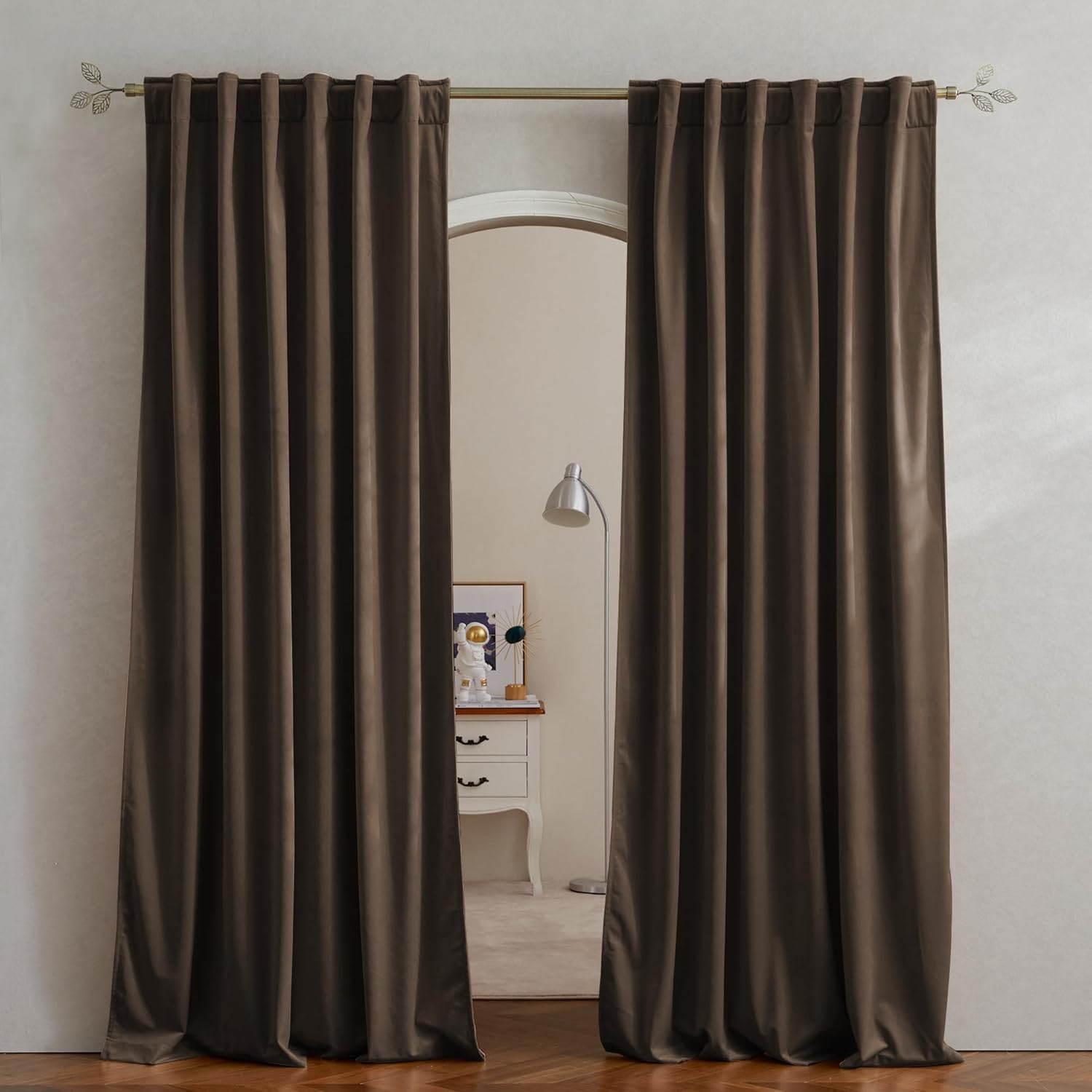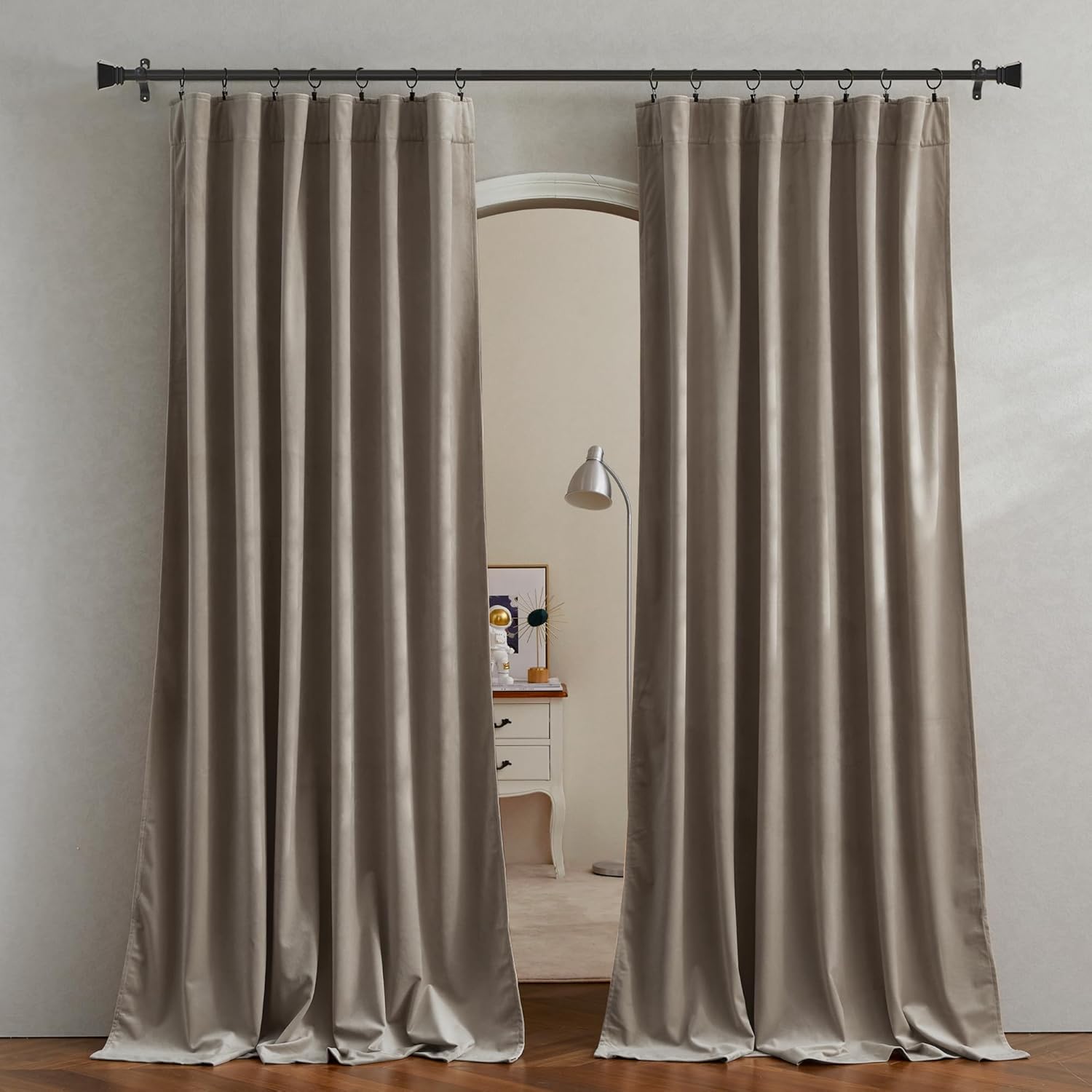 • READY MADE - Package includes 2 velvet curtain panels, each mesures 52" width by 96" length. Soft and smooth handle without any chemical reagent, can be hung as window/door curtains for bedroom & living room & dining room...
