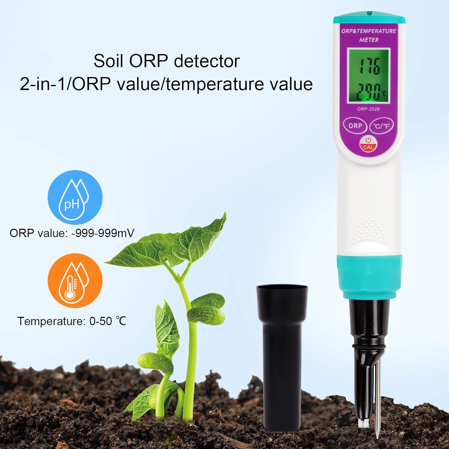 1. Portable and Convenient Design: The compact design of our soil ORP temperature Tester allows for easy transport, making it ideal for gardeners and farmers to observe soil health anytime, anywhere. 2. Dual Functionality: This 2 in 1 tester measures both ORP and temperature levels, providing essential data on soil conditions, which directly influences plant health and growth for optimal gardening. 3. Real Time Temperature Observing: With real time soil temperature readings, users can ensure ideal conditions for plant survival, enabling you to maintain the best greenhouse environment throughout the seasons. 4. High Accuracy: Equipped with a high accuracy sensitive electrode, this soil tester delivers accurate results every time. Keep electrode clean, wash it with distilled or pure water after use, avoid collision or friction during use to prevent damage. 5. Wide Range Testing: Test a broad spectrum of conditions with ORP values from -999 to 999mV and temperatures from 0 to 50°C. It ensures accurate readings for effective soil management. Specification: Item Type: Soil Tester Material: ABS Weight: Approx. 270.00g / 9.52oz Application: Measures Soil ORP Value and Temperature Product Size: Approx. 220x35x32mm / 8.7x1.4x1.3in Measurement Range: ORP Value: -999 to 999 mV Temperature: 0 to 50°C Resolution: ORP: 1 mV Temperature: 0.1°C Accuracy: ORP: ±5 mV Temperature: ±1°C Automatic Temperature Compensation: 0°C to 50°C Battery (Not Included): 2 x 3A Batteries Operating Temperature: 0°C to 50°C Auto Shutoff: 8 Minutes How to Use: After installing the battery, simply operate it to use. Package List: 1 x Soil Tester 1 x Storage Box 1 x Instruction Manual