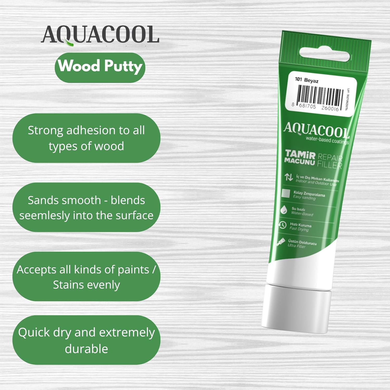 Water based high quality wood repair putty. From DIY projects to professional use, Aquacool water based putty brings a high quality solution to all wood repair needs. Fill in Cracks, holes, any sory of disfigurement to wood, MDF, MDF laminant, furniture. Fast drying, easy to sand and coat, and increadibly durable. Could be used for interior or exterior applications. Store in a cool dry place between 40 - 90 degrees fahrenheit.