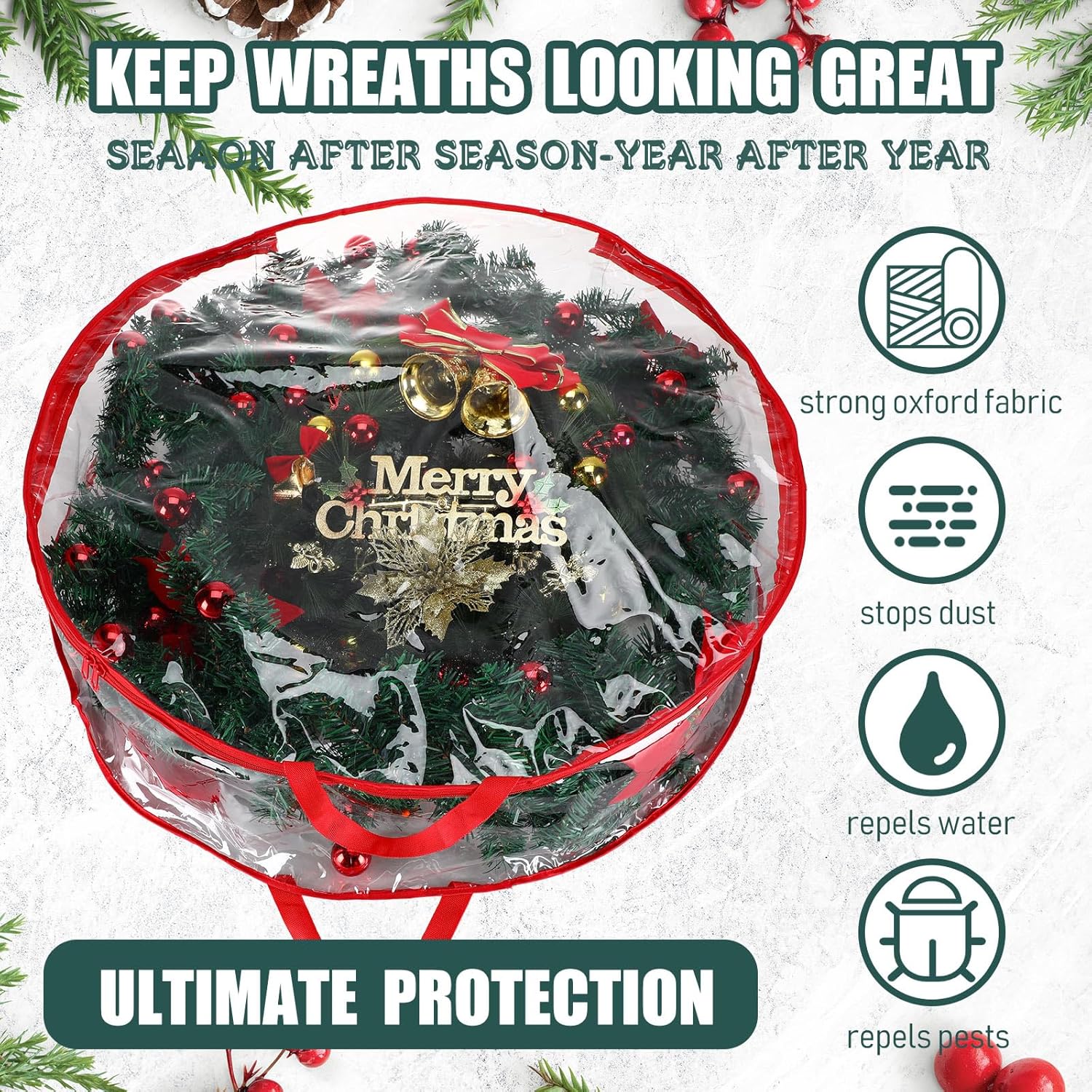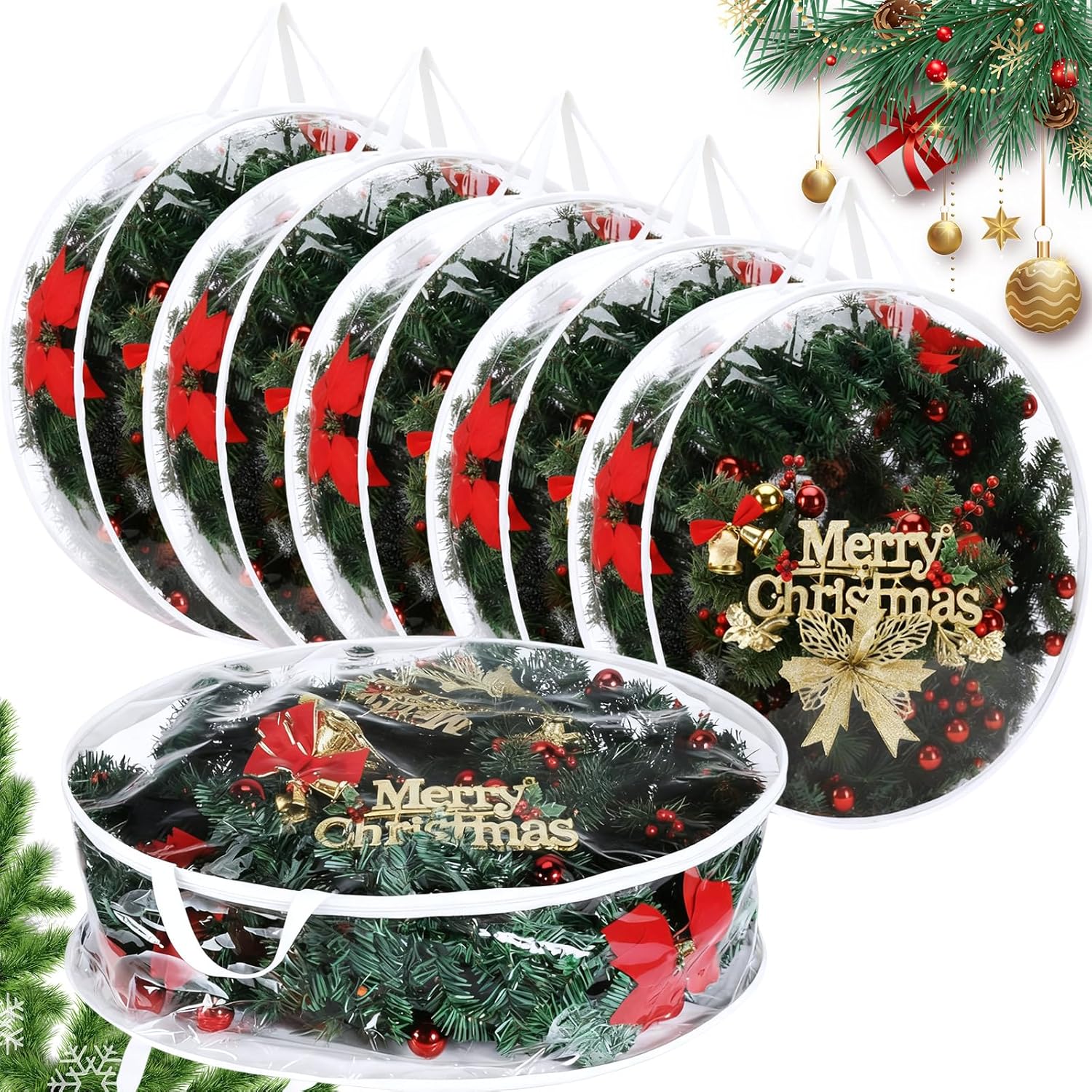 Features: Practical storage tool: Using the clear wreath storage bag is a nice way to keep your Christmas wreaths away from water, dust, and scratches. It can make your Christmas wreaths look in mint condition after several uses, making them fresh and hopeful. The Xmas garland container is not only suitable for the preservation of holiday wreaths, but also ideal for the storage and decoration of holiday gifts, which can save your space and time. Wide applicable: This clear Christmas wreath storage bag can not only be supplied to store your wreaths well, but also can be hung on the wall as your wall decoration in daily life. Moreover, it can also serve as an adorable gift, sending to your friends, family members, neighbors, colleagues, and so on, and they will be delightful to receive the gift, and enjoy the happiness of decorating. Specifications: Material: PVC Color: as shown Size: approx. 36 inches in diameter and 8 inches in height Package includes: 10 x Wreath storage bags Notes: Manual measurement, please allow slight errors on size. The color may exist a slight difference due to different screen displays.