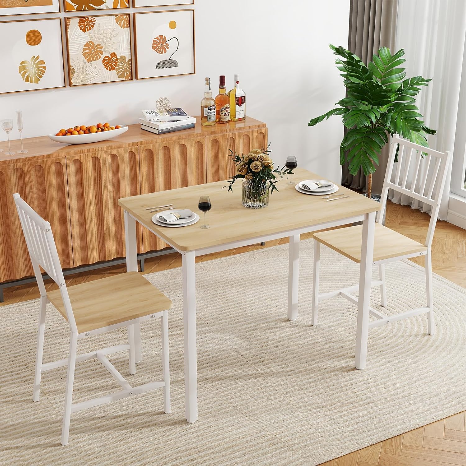 Upgrade your space with this modern dining table set for 2, designed for comfort and compact living. Whether for meals, coffee, or work, it creates a cozy and practical spot without taking up extra space.With a 35.4" x 23.6" tabletop, it provides ample room for two people to dine comfortably. Ideal as a breakfast table, small kitchen table, or casual dining solution for apartments and small spaces.Built with a reinforced frame, the table supports up to 260 lbs, and each chair holds up to 300 lbs, ensuring stable and reliable daily use. The 2 matching chairs complete a clean, coordinated look.The smooth tabletop makes cleaning quick and easy—perfect for everyday use from morning coffee to dinner.Adjustable feet keep the set stable on uneven floors while helping protect your flooring. Chairs slide neatly under the table to save space and keep your area tidy.Featuring a sleek black finish, this compact dining set blends effortlessly into kitchens, dining areas, or living rooms—offering both style and functionality.