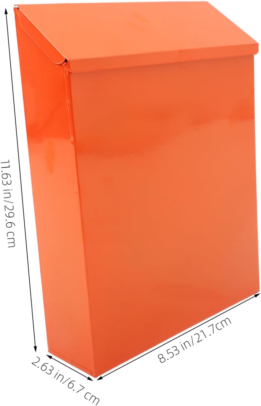 Package Include 1 x Mailbox Characteristics - Size: 29.60X21.70X6.70cm/11.63X8.53X2 box. - Color: Orange wall mounted mail box -Material:Iron letter boxes of metal - Made of selected good iron material, this mailbox is and sturdy for lockable postbox. - Decorative style letter box, it can be installed easily and convenient to take out your letter donation box. - Features simple appearance and color design and workmanship, our mailbox is suitable for many places wall mount mailbox. - Not only as a universal household letter box, it also can be a delicate decoration for your home and garden mailboxes for outside. - Versatile to use, can be used as a practical mailbox or a wonderful photo prop receipt box.Goods Informationwall mount iron mailbox Well-designed, different from the average mailbox.vintage mailbox This is not only a household mailbox, postbox, but also a suggestion box for a company, plant community.hanging mail organizer The Decorative style mailbox is made of safe iron, with delicate craftsmanship and fine workmanship.wall mount mailbox Mailbox, and practical, easy to use and easy to install