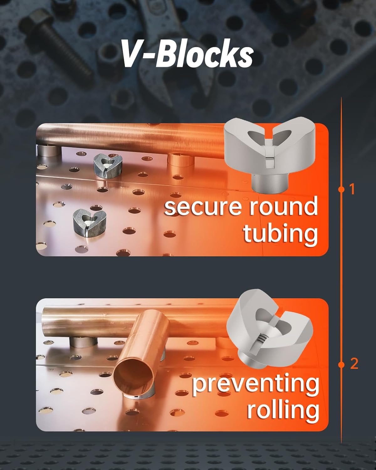 | Included Components | 1 x clamp, 6 x round tube V-groove fixed pins, 6 x square tube fixed pins, 6 x stackable riser stops |